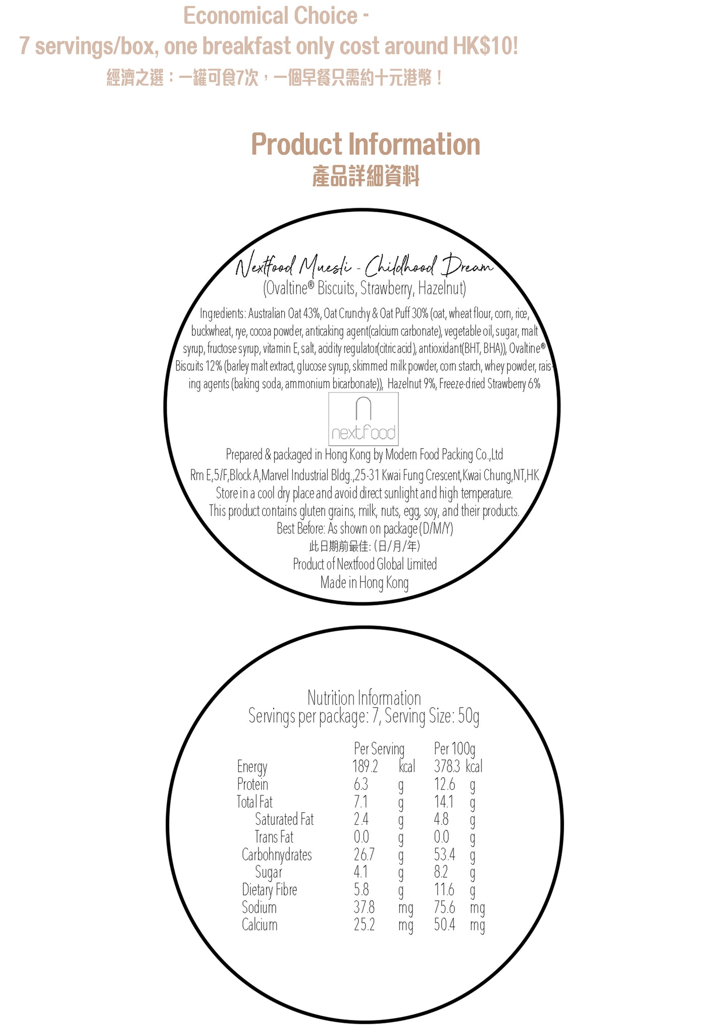 !!優惠!! Nextfood 即食燕麥片 - Childhood Dream (阿華田餅乾, 草莓 & 榛子) 350克
