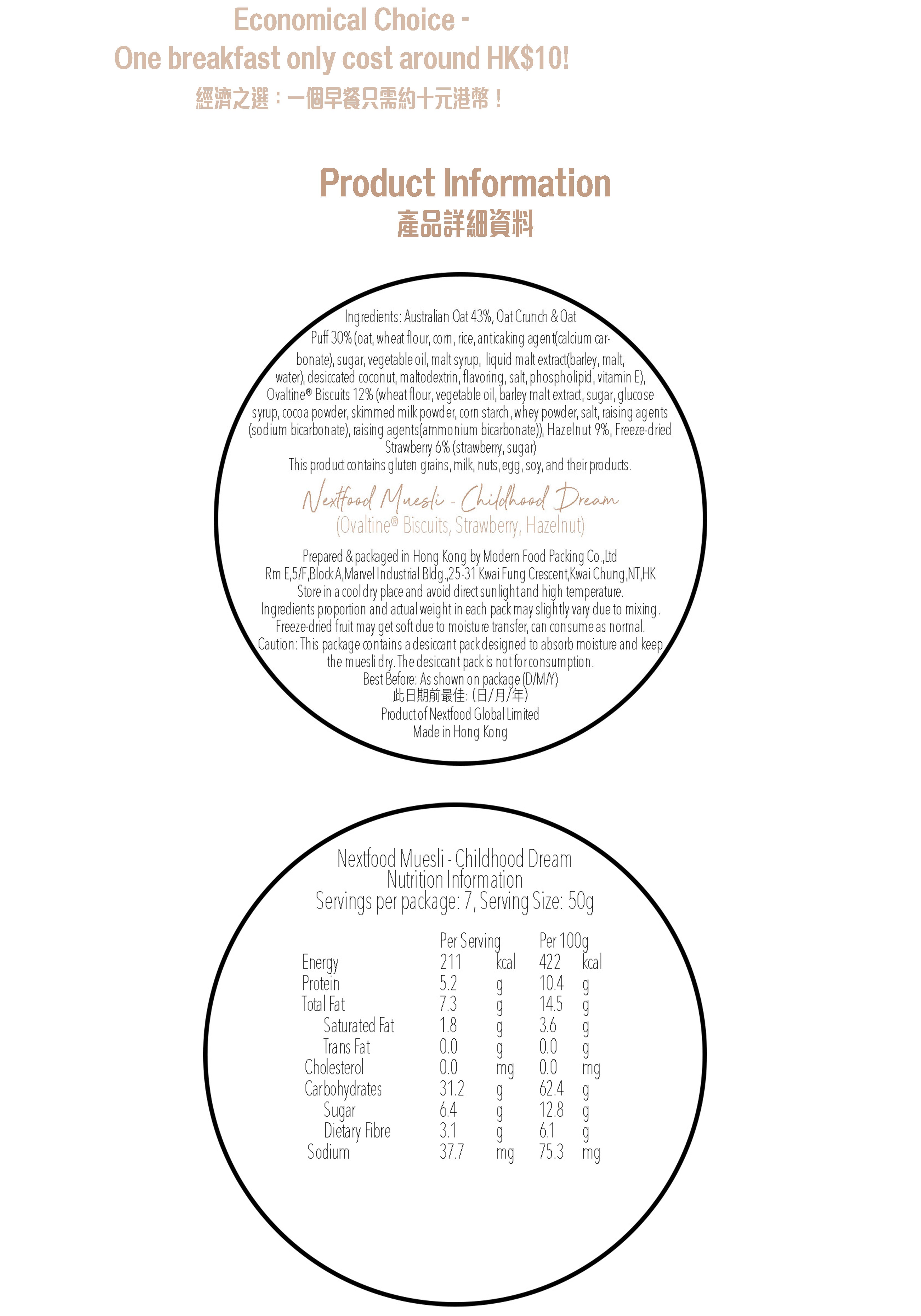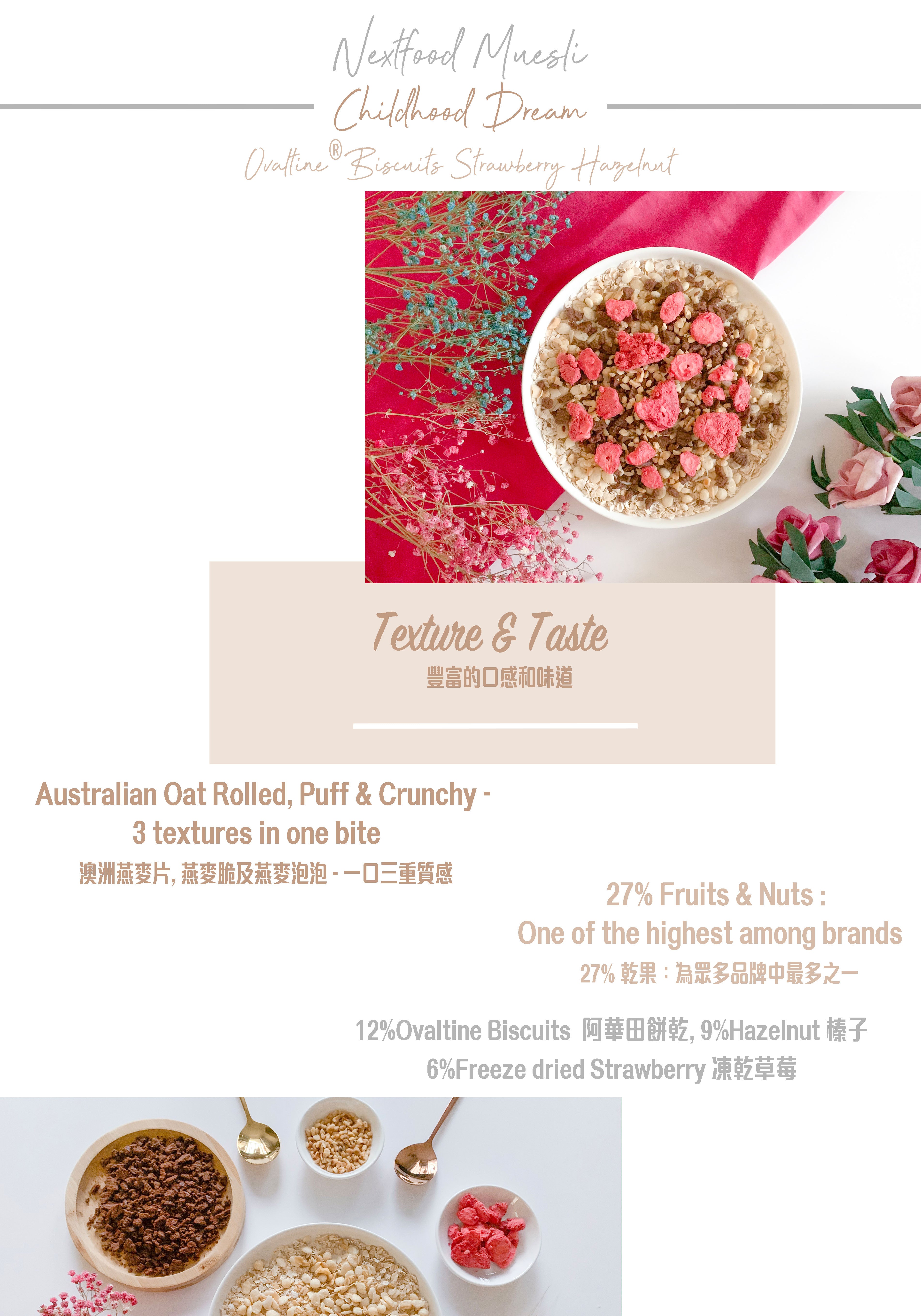Nextfood Muesli - Childhood Dream (Ovaltine Biscuits, Strawberry & Hazelnut) 350g