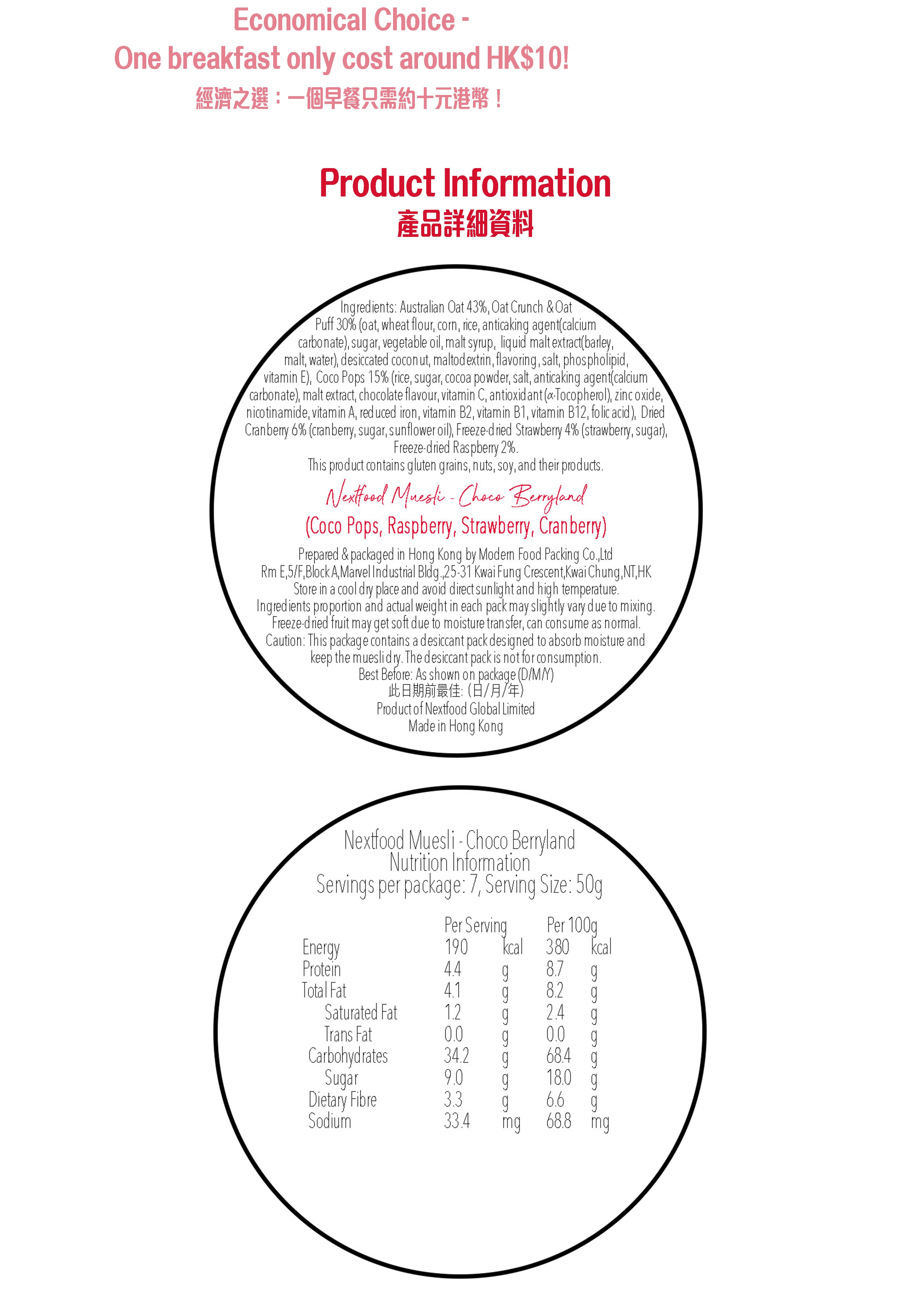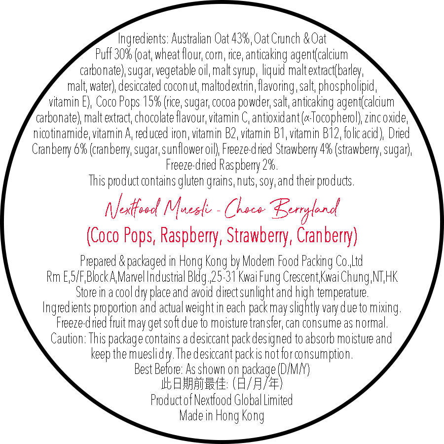 Nextfood Muesli - Choco Berryland (Choco Pops, Raspberry, Strawberry & Cranberry) 350g