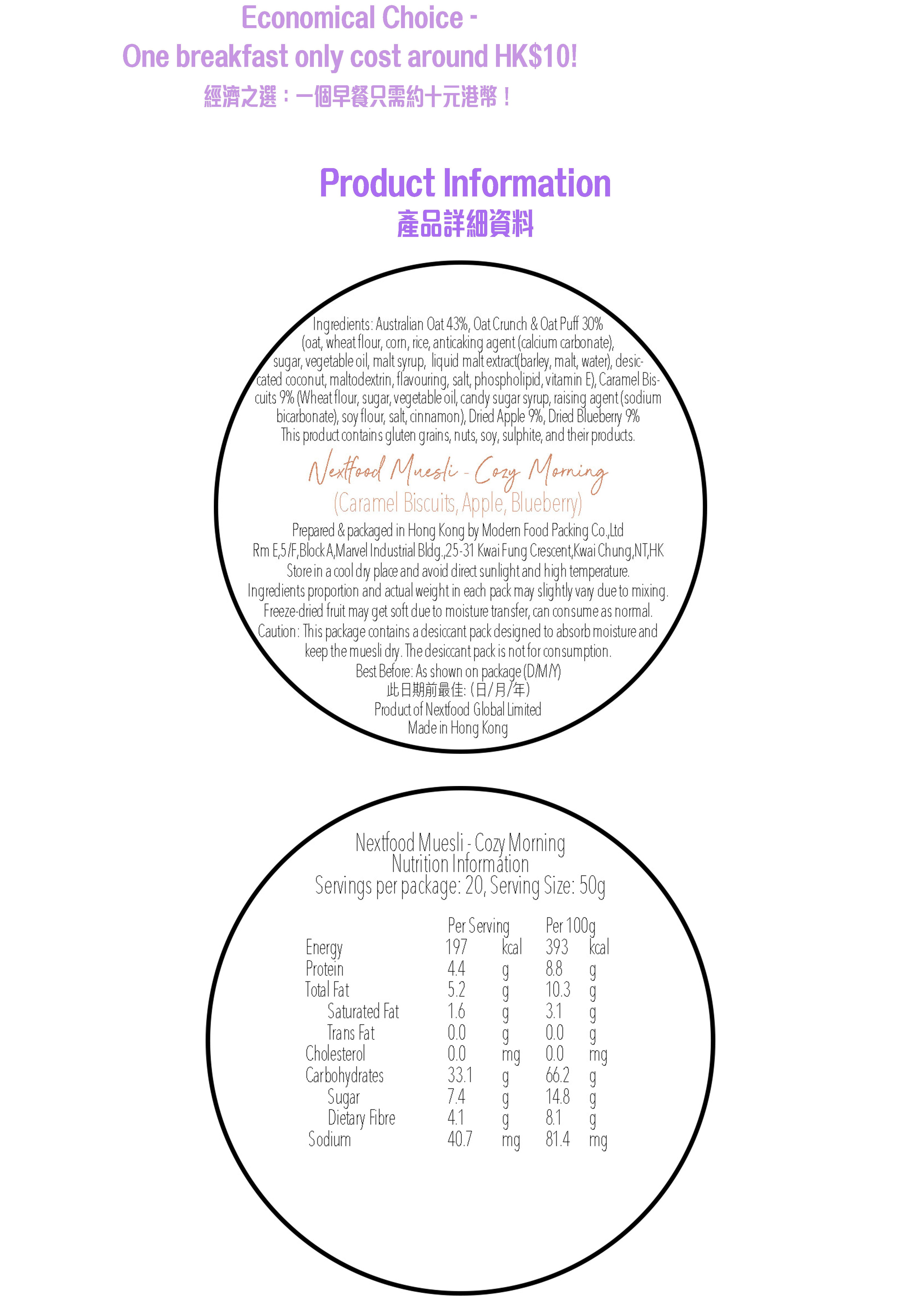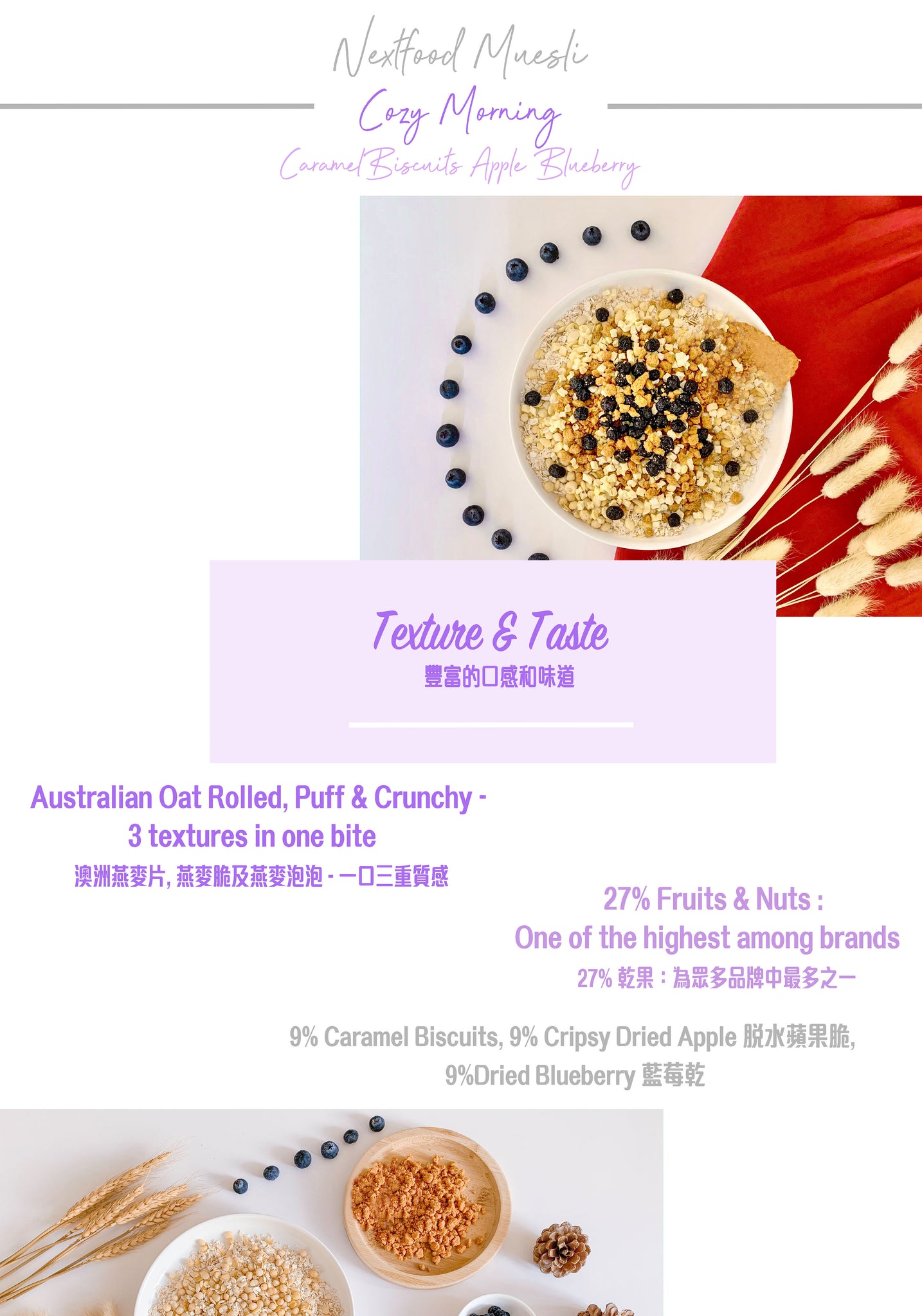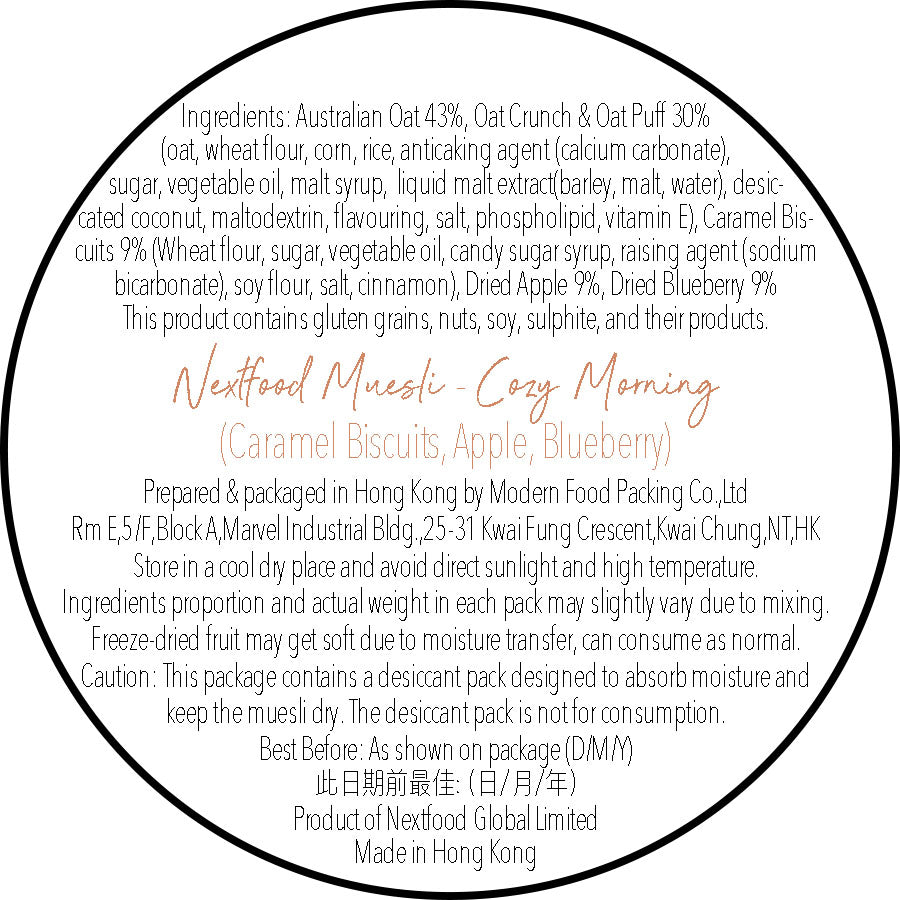 Nextfood Muesli - Cozy Morning (Caramel Biscuits, Apple & Blueberry) 1KG