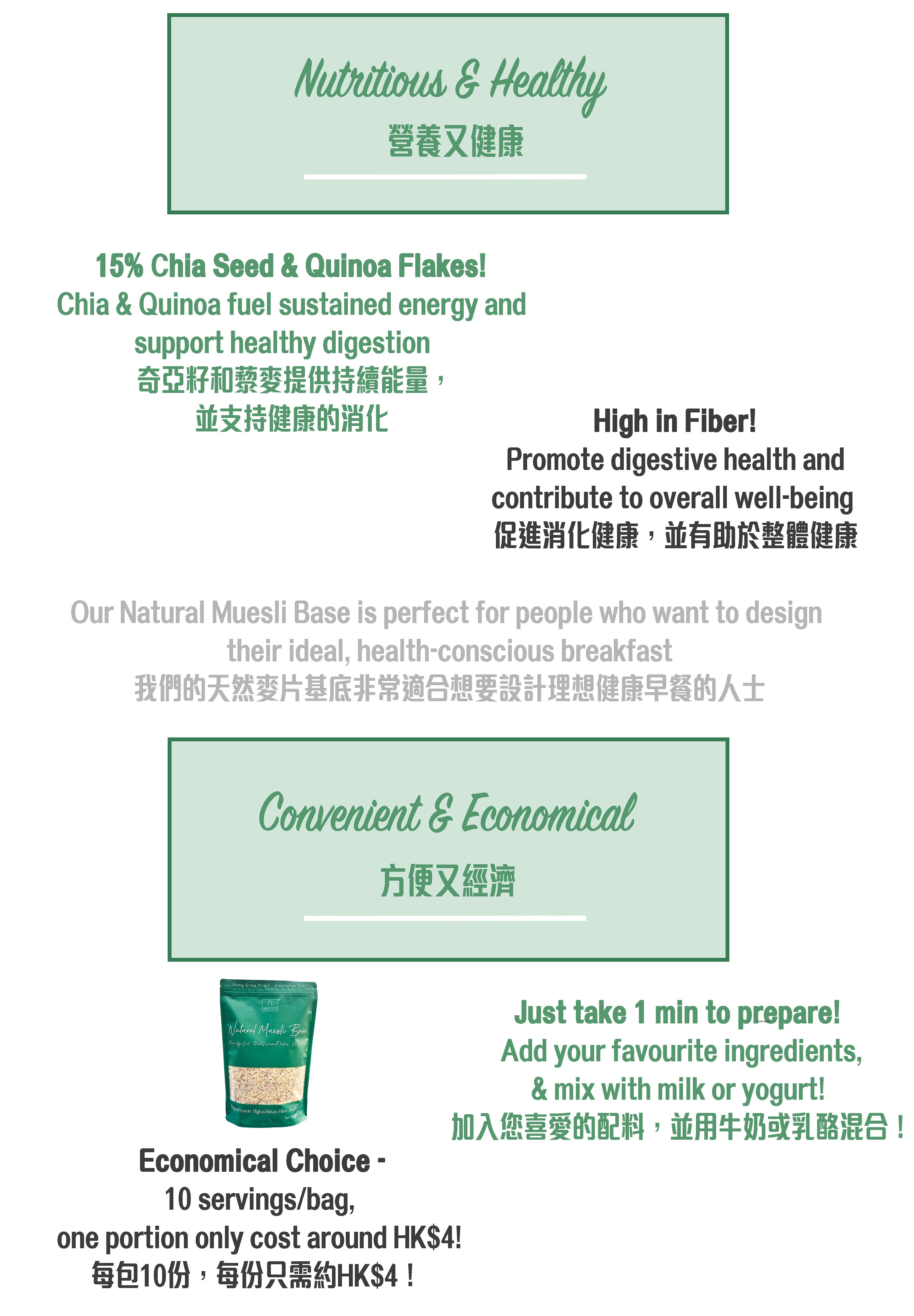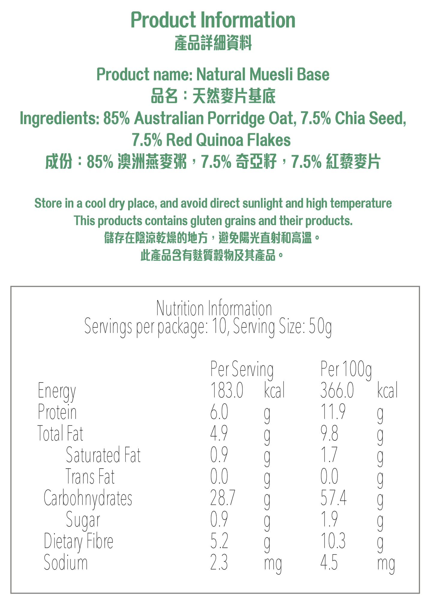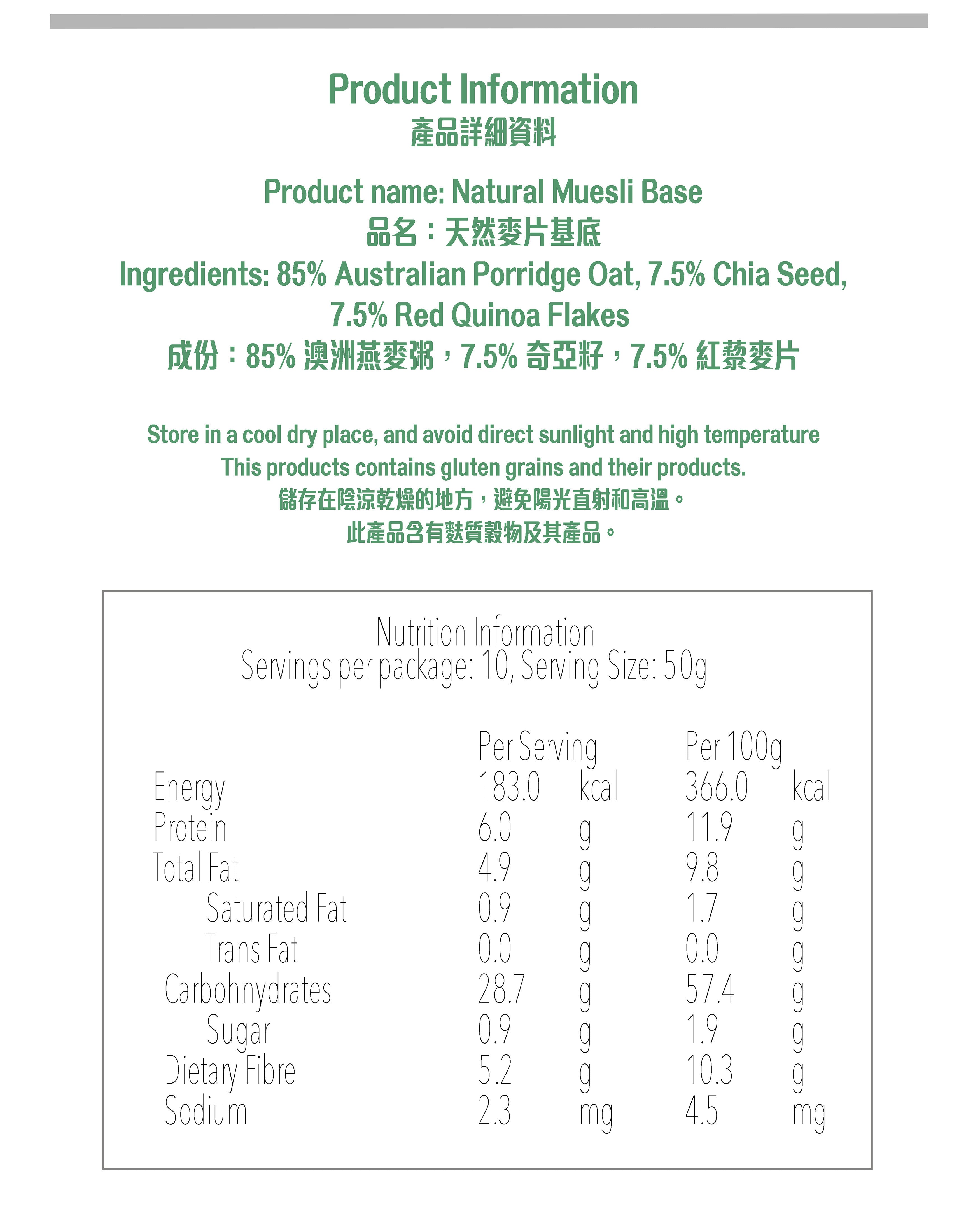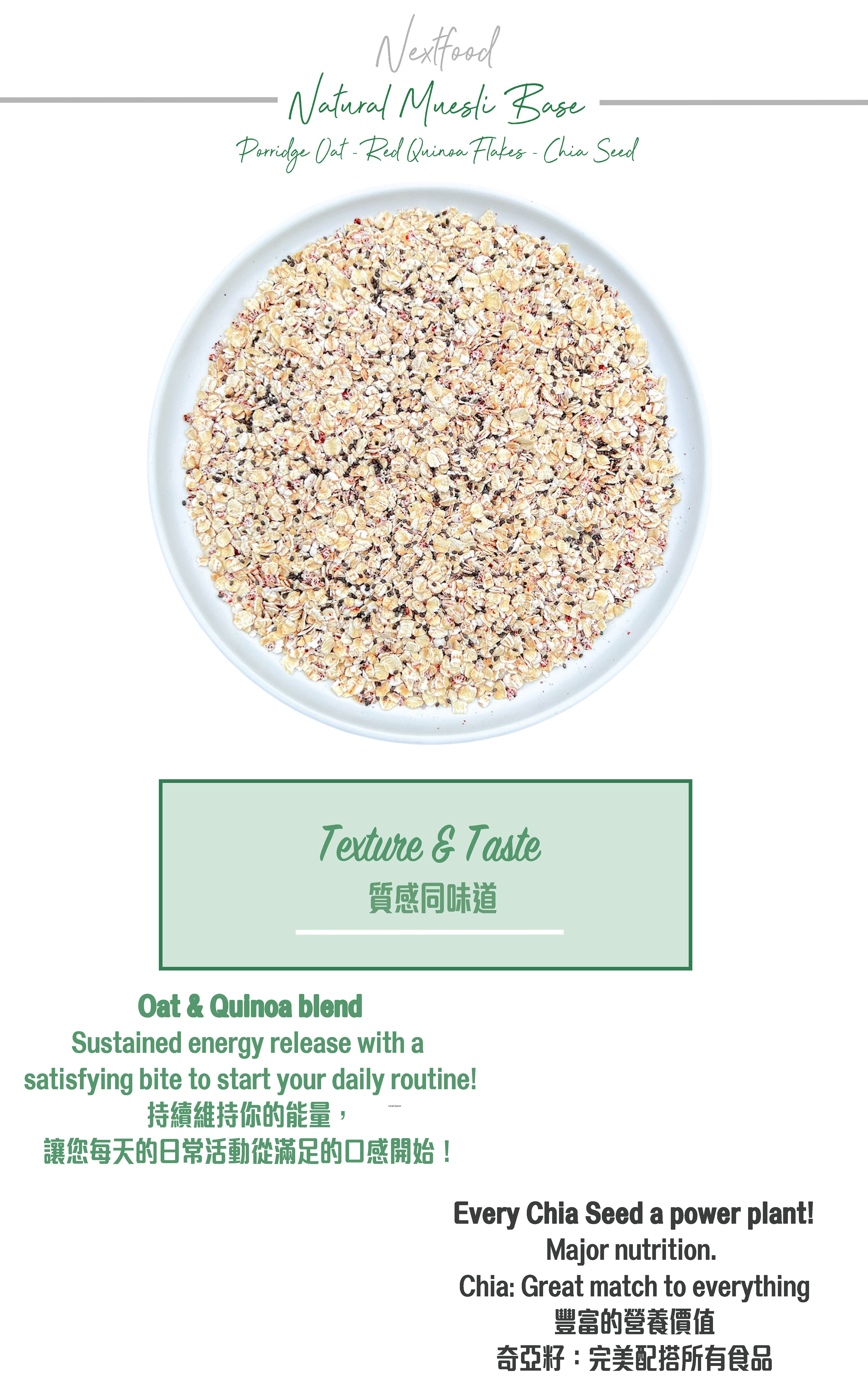 Nextfood Muesli Base - Australian Porridge Oat, Red Quinoa Flakes & Chia Seed Mix (500g)