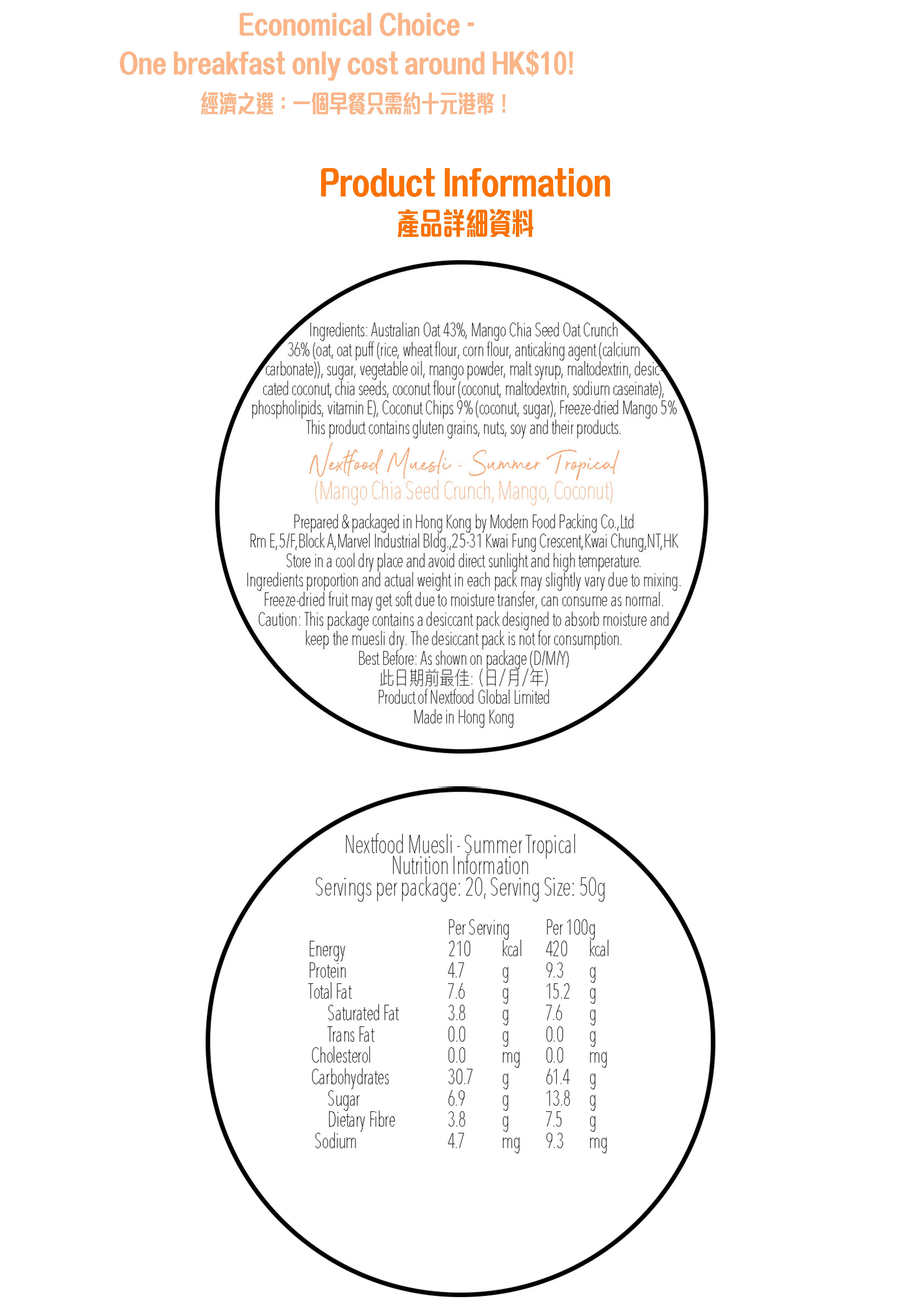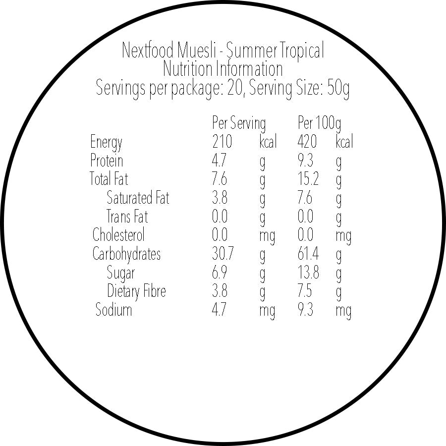 Nextfood Muesli - Summer Tropical (Mango-Chia Seed Crunch, Mango, Coconut) 1KG